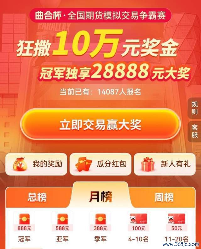 左证参赛者当然周的详尽得分排行进行评比,每周10东说念主获奖,最高奖励为100元京东卡。获奖者需账户净利润为正、当周有往复(开仓或平仓)。
